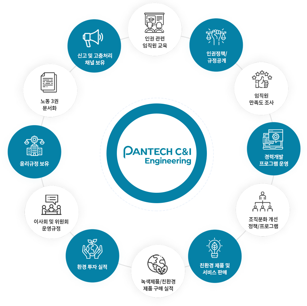 팬택씨앤아이 엔지니어링은 환경보존, 준법 및 윤리 경영, 투명한 지배구조를